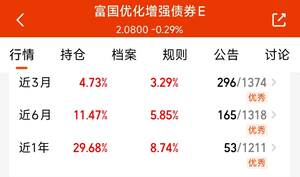 其实比起股基的调整,固收+相对而言就没有那么怕调整。主要是固收+有债的底仓,有积累,就算一整轮行情下来,固收+的回撤也会更小,长期来看总是会创新高的。像$富国优化增强债券E$(018980)这种,一年最大回撤还不到8%,却有接近30%的收益,真的很值得关注。#指数操盘手集结令#