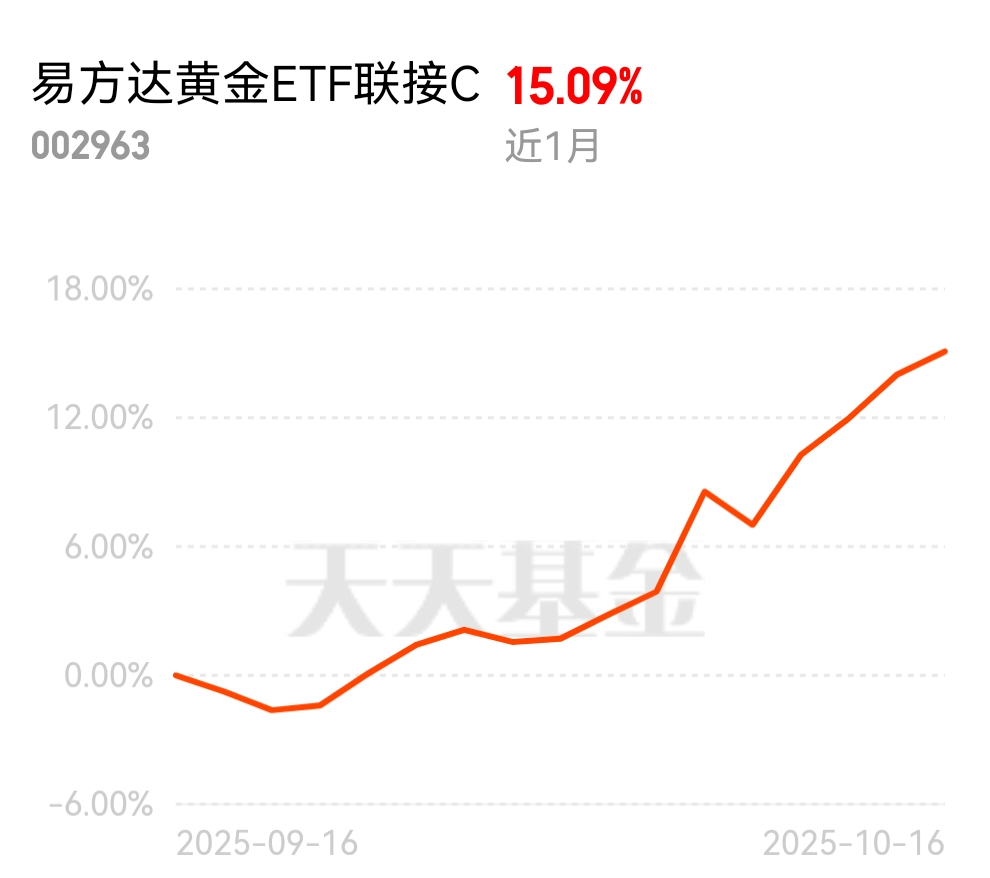 黄金牛市来了!金价创今年最高涨幅,易方达黄金ETF联接C今天涨3个点,近一月15