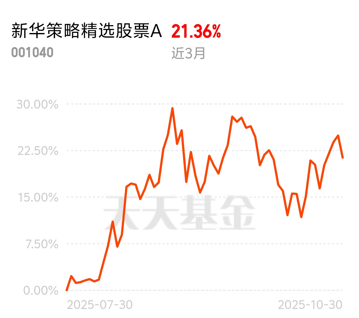 这阵子A股情绪低落,赚钱难,新华策略精选股票A逆势涨,近3个月21.36%,很争气。