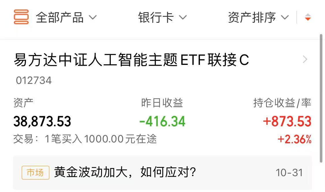 今天人工智能跌幅比较大,稍微补一点。$易方达中证人工智能主题ETF联接C(OTCFUND|012734)$