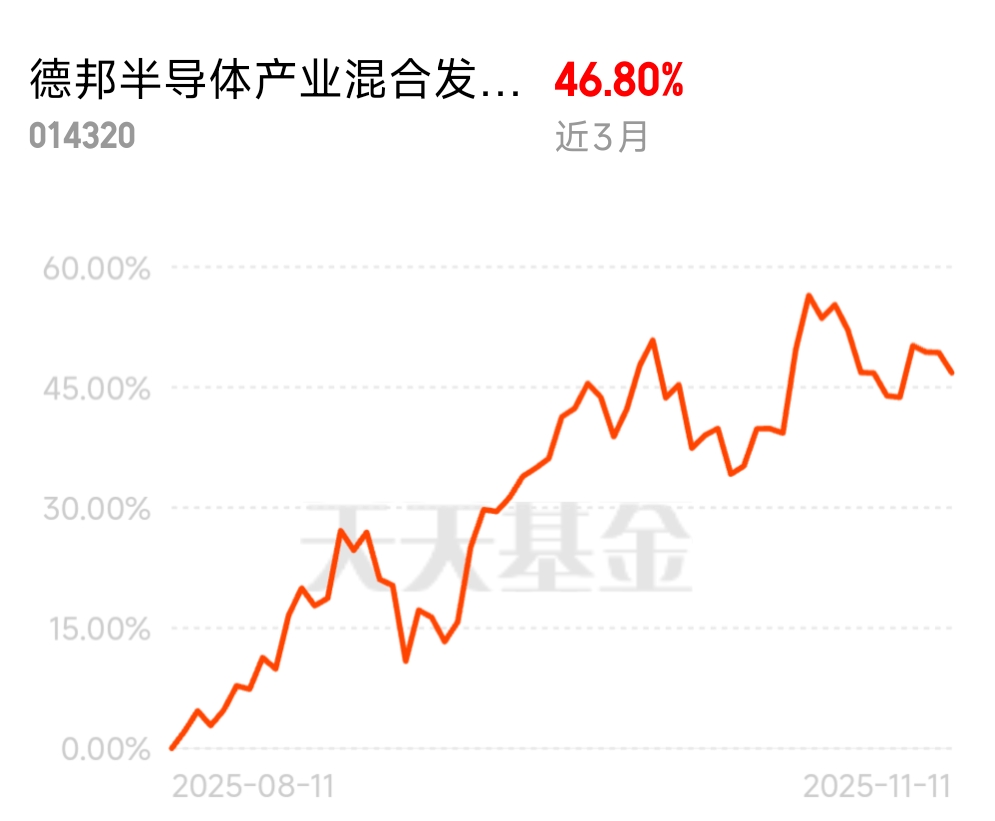 存储芯片价格持续抬升,行业周期向上趋势特别明确,资金都在往这个方向涌。$德邦半导体产业混合发起式C$ 踩准节奏,存储占比很高,近3个月涨了46.80%,最近表现挺好,长期也靠谱,逢低就加仓。