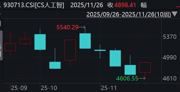 重仓了人工智能,最多的时候收益率有十几个点,但最近1个多月跌得有点狠,收益抹平甚至还浮亏5个点。尤其是10月下旬开始,CS人工智指数周线4连跌,很难熬。