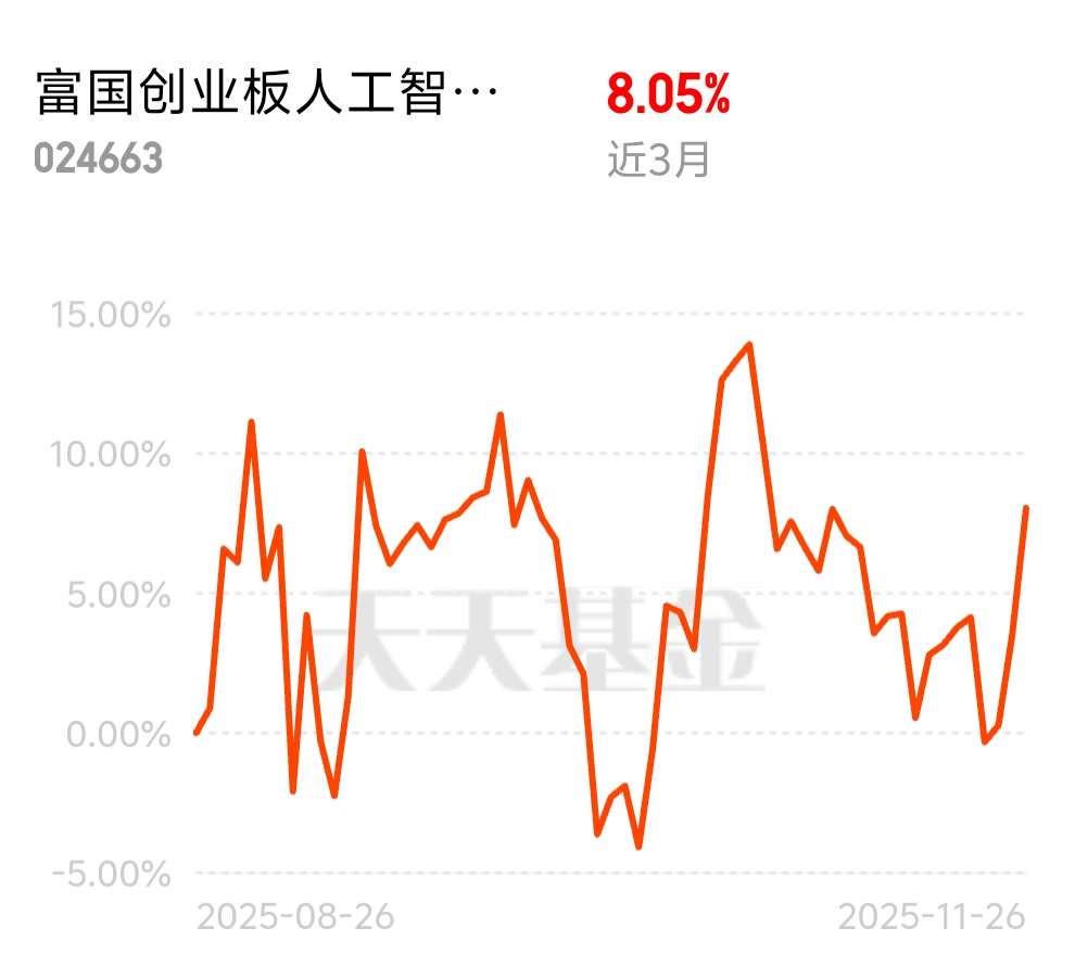 今天人工智能继续反弹。富国创业板人工智能3个月涨8.05%,$易方达中证人工智能