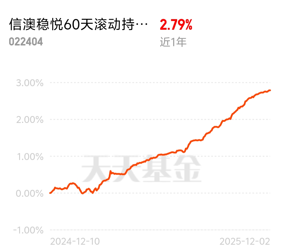 手里刚好有笔闲钱没处去?信澳稳悦60天了解一下债市稳,它表现更亮眼,2.79%的涨幅让钱不躺平$信澳稳悦60天滚动持有债券C$