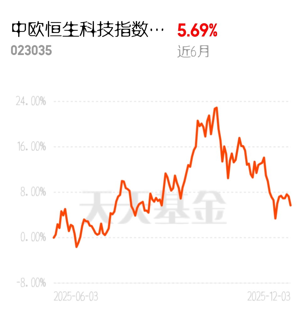 港股市场流动性持续改善,情绪逐步回暖,恒生科技指数上周连涨后小幅调整,正是低吸好时机。中欧恒生科技指数发起 (QDII) C 近 6 个月 5.69%,被动跟踪指数,一键拿捏港股科技龙头。