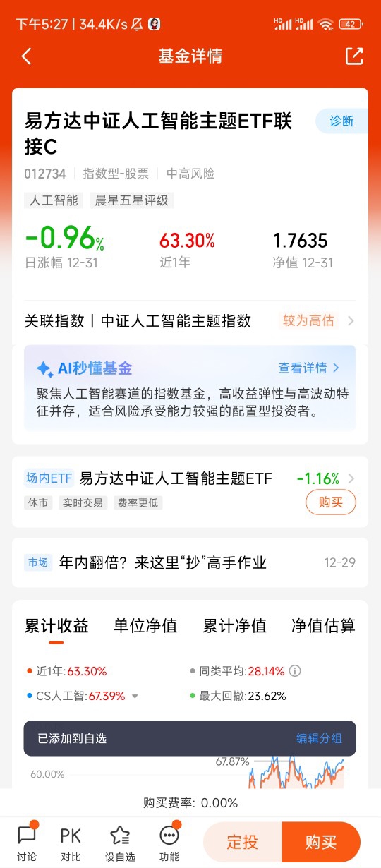 #我的年度投资操作#$易方达中证人工智能主题ETF联接C$