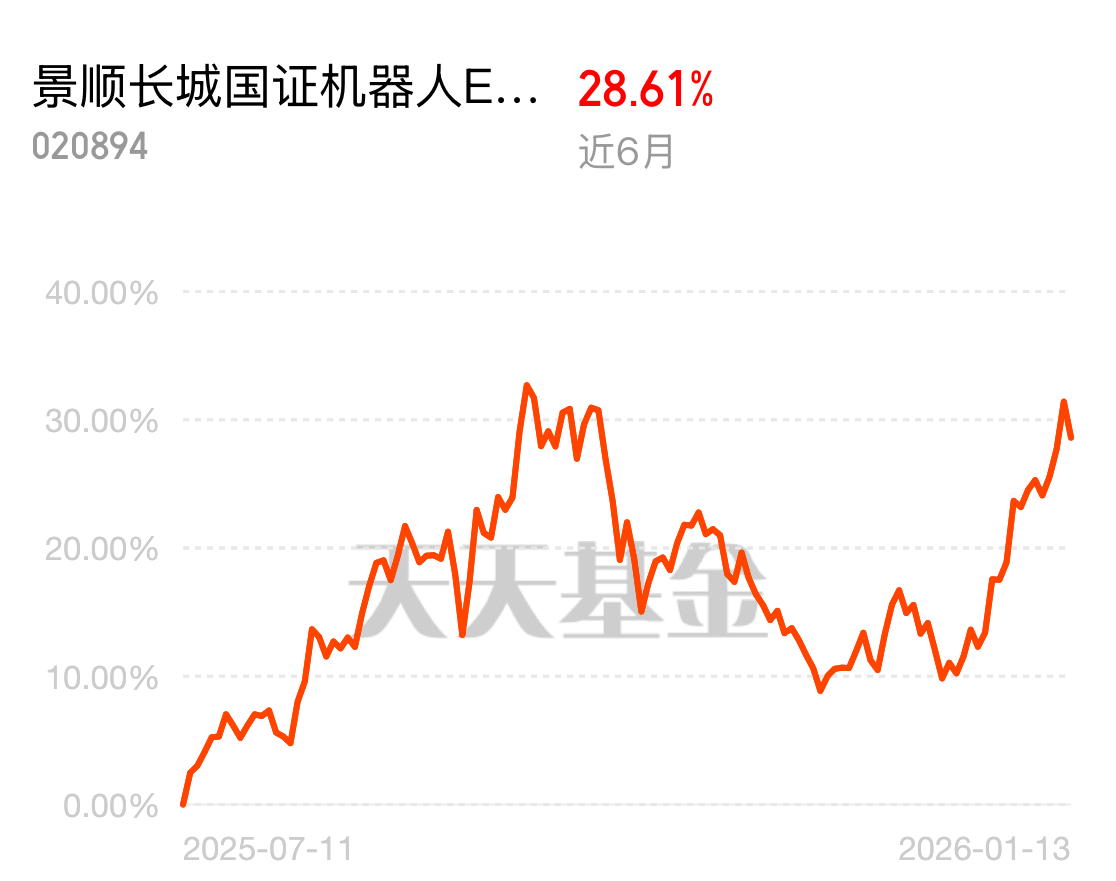 人形机器人量产落地提速,板块波动中见机会,昨天回调今天立马冲高。景顺长城国证机器人 ETF 联接 C 近 6 月 28.61%,紧跟国证指数抓核心,国家撑腰有保障,7 免适合赚了就跑。$景顺长城国证机器人ETF联接C$