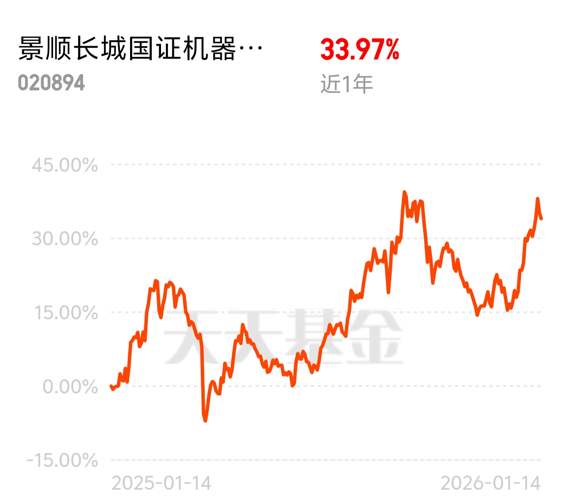 2026 机器人商业化元年开启,消费级产品集中上市,没想到这两天板块回调了。景顺长城国证机器人 ETF 联接 C 精准聚焦人形机器人核心链,近 1 年涨 33.97%,7 免政策超适配短线,回调期间加仓能摊薄成本。$景顺长城国证机器人ETF联接C$