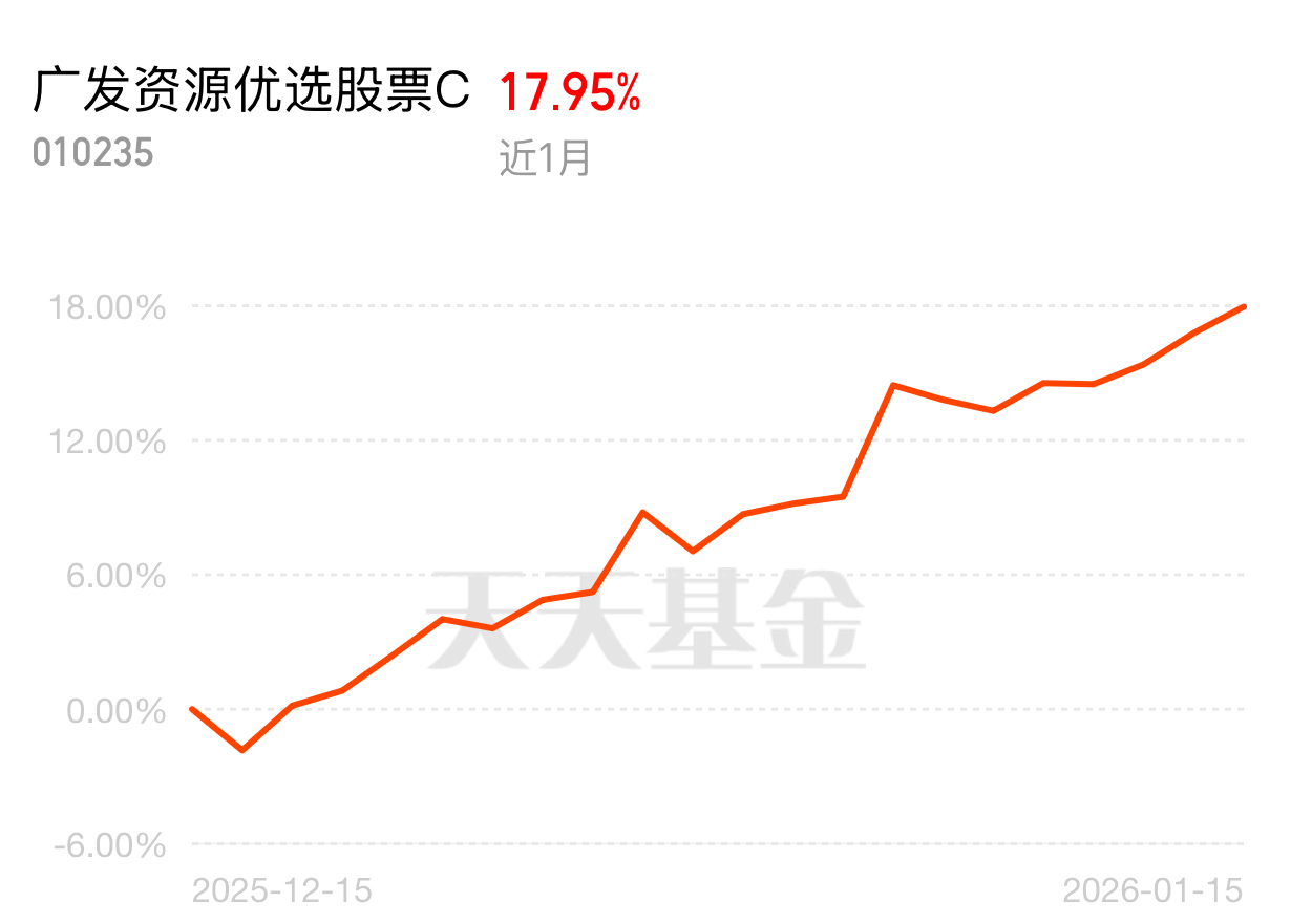 资源周期启动迹象明显,资金都在往这跑。我这个广发资源优选C配置全,有色+化工+建