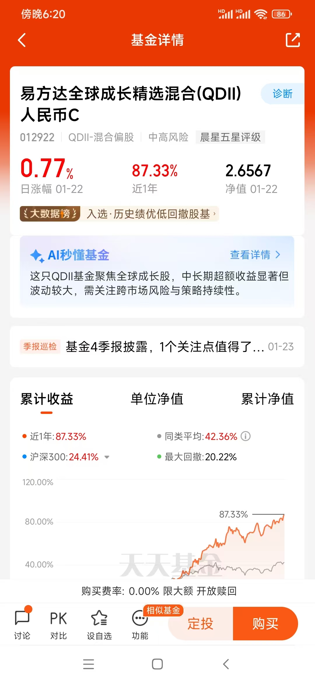 $易方达全球成长精选混合(QDII)人民币C(OTCFUND|012922)$