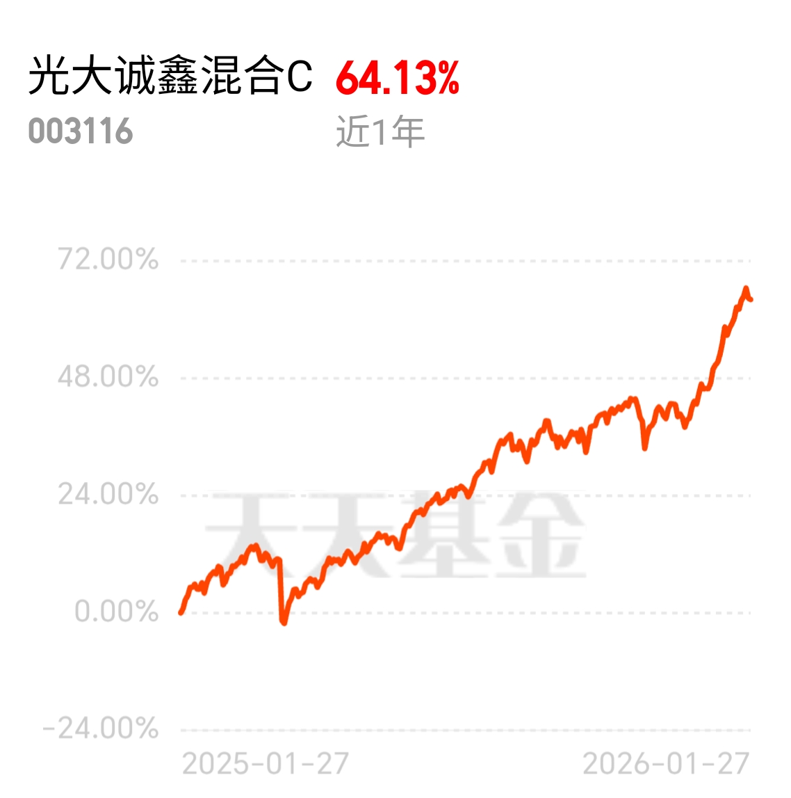 这年头找个收益能打的混合基不容易,光大诚鑫混合C必须拥有姓名,近1年涨了64.1