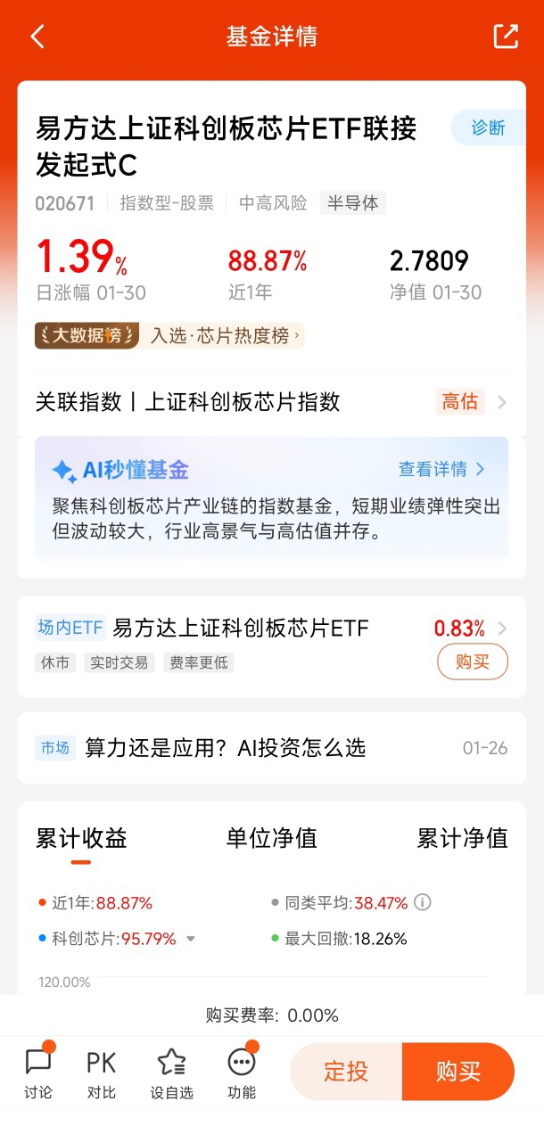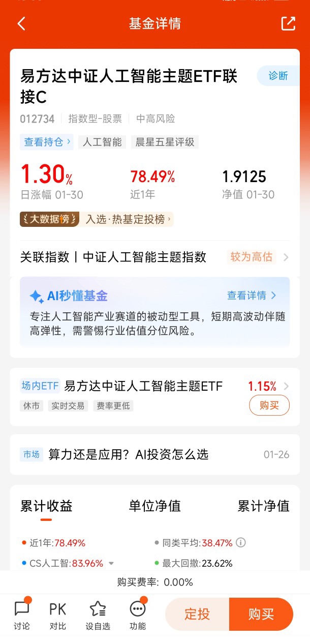 投资就像谈恋爱,有时候你以为是短期约会,结果却变成了一场刻骨铭心的婚姻——我和易方达中证人工智能主题ETF联接C基金的故事就是这样开始的。