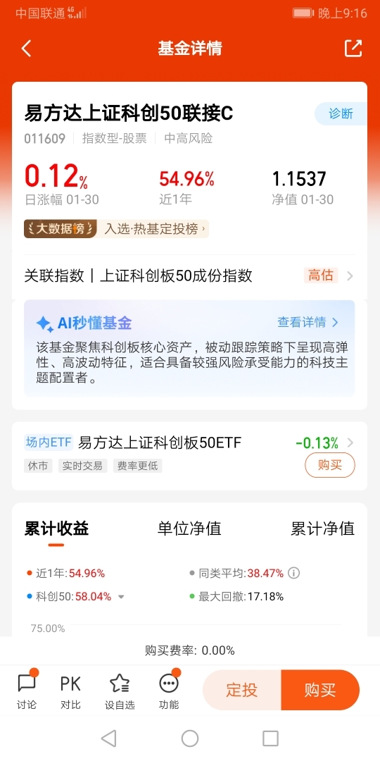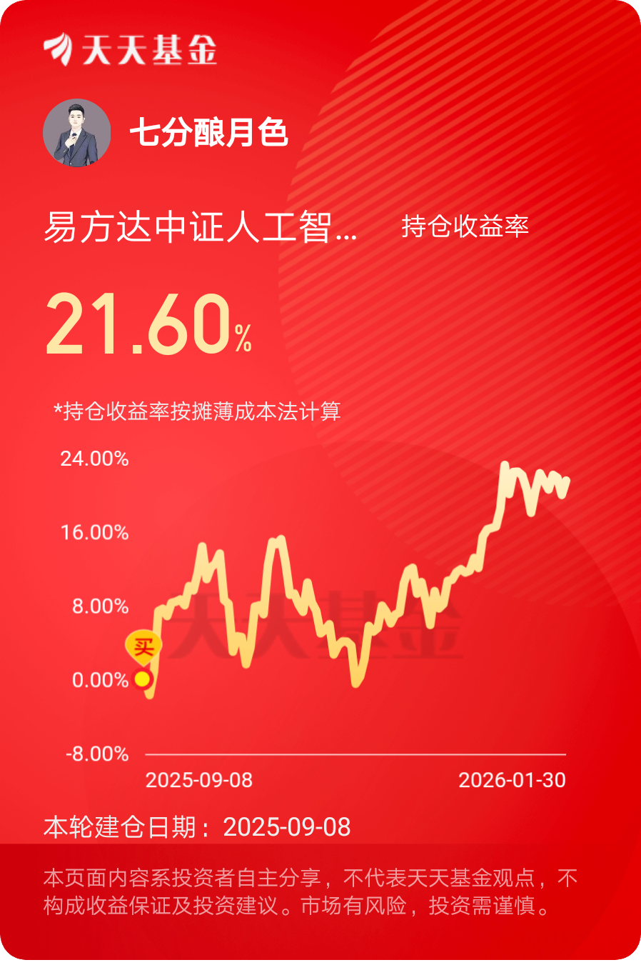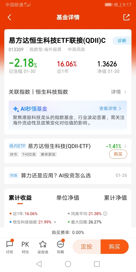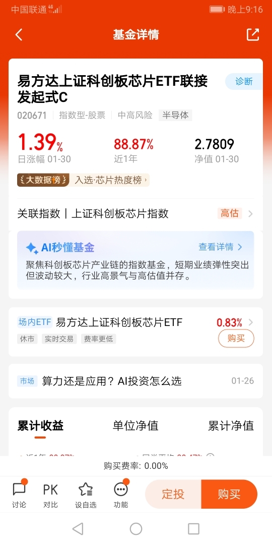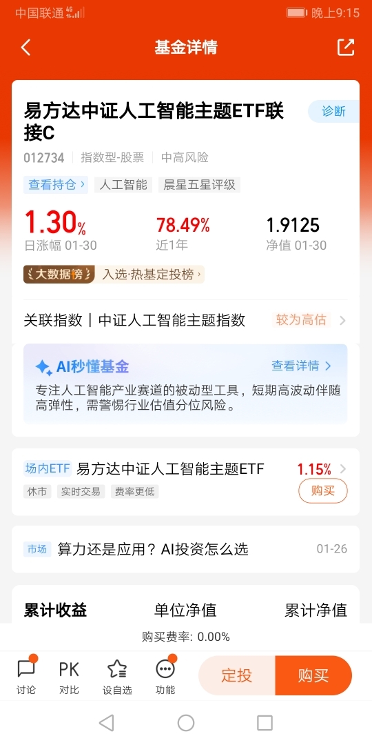 我最得意的操作,是一直持有易方达中证人工智能主题ETF联接C(012734),$