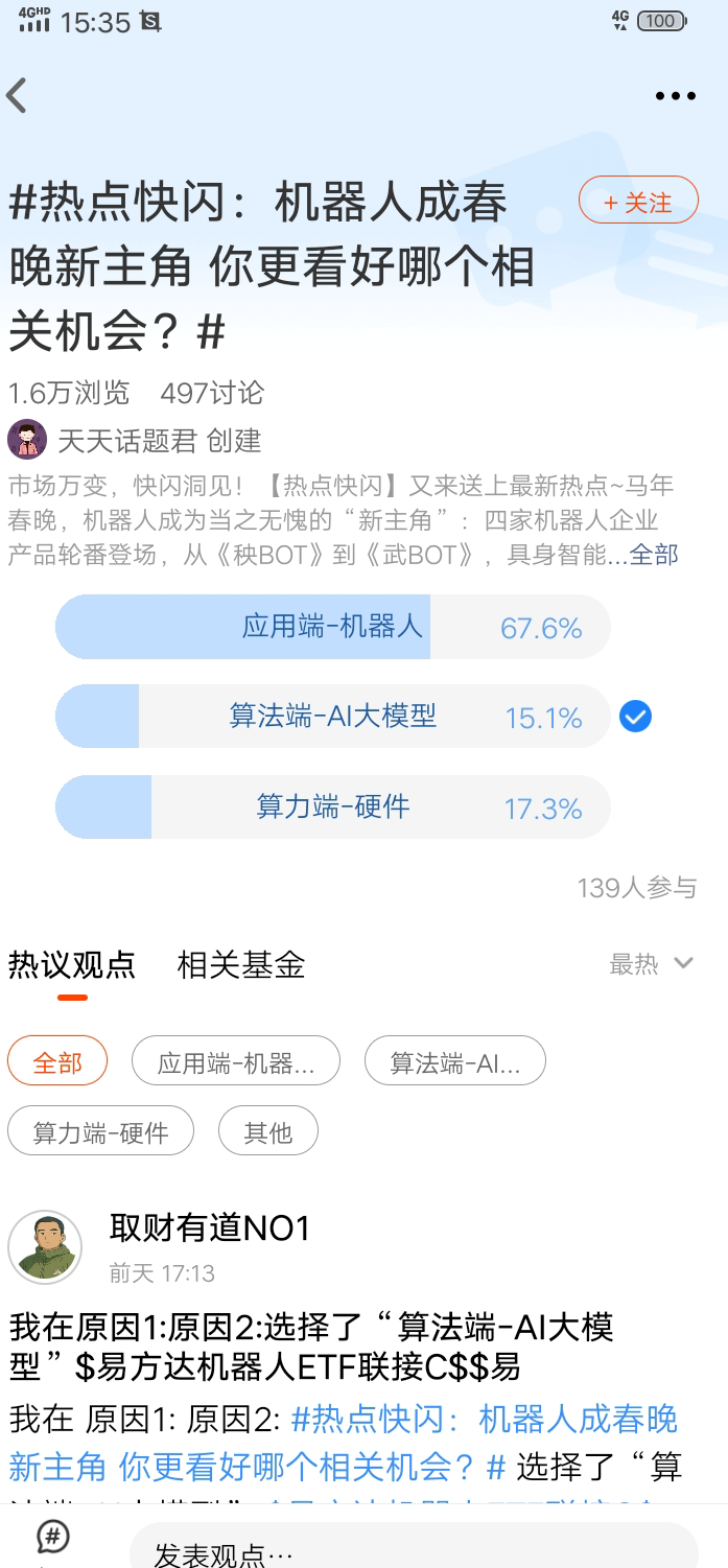 我看好算法端,人工智能概念从去年就开始爆发,到今年,大家一直都重点关注中。去年的十五五已经提出,下一个五年规划重点提到科技创新,而人工智能也属于此类。今年是五年规划的第一年,我相信这五年中人工智能技术会有大的飞跃,也可以带动机器人产业链一起爆发,对于机器人产业链,我最看重的就是AI智能,它会决定着未来机器人走进我们生活中时间的快慢。这是我比较看重算法端的原因。$易方达中证人工智能主题ETF联接C$ @易方达基金