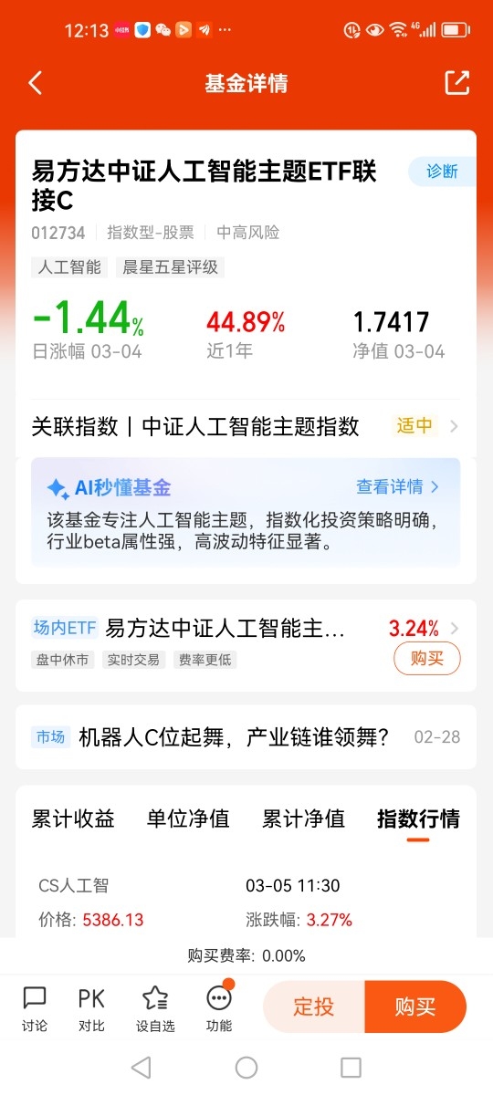 2026年3月4日,中证人工智能主题指数(930713)大涨,截止午间收盘,指数上涨3.27%。成份股新易盛上涨11.75%、中际旭创上涨6.39%、寒武纪上涨4.88%。$易方达中证人工智能主题ETF联接C(012734)$紧密跟踪中证人工智能主题指数(930713),近1年上涨44.89%,在同类排行前16.13%,业绩表现优秀。2026年是机器人产业的量产元年,标志着行业从技术验证转向规模化落地,并在多个维度实现突破性进展。后续AI产业链有望围绕国产替代深化、新技术渗透率提升以及应用端商业化落地展开多层次的价值重估。而算法端-AI大模型,决定机器人智能水平的关键,未来配置价值凸显。投资者可借助$易方达中证人工智能主题ETF联接C$来参与人工智能板块的投资。@易方达基金