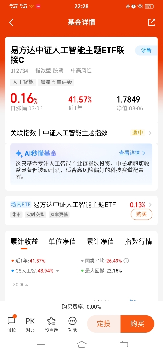坚定做长期投资,将择机买入$易方达中证人工智能主题ETF联接C$ ,相信在张湛经理的管理下,会为持有人带来稳定的超额收益。@易方达基金
