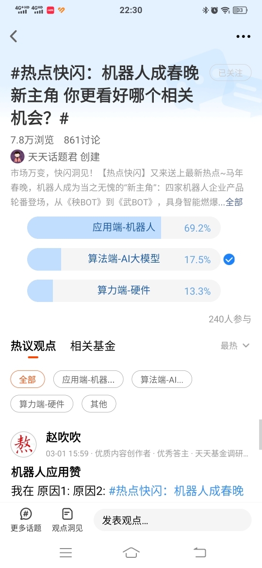 #热点快闪:机器人成春晚新主角 你更看好哪个相关机会?# 我更看好算法端-AI大模型。