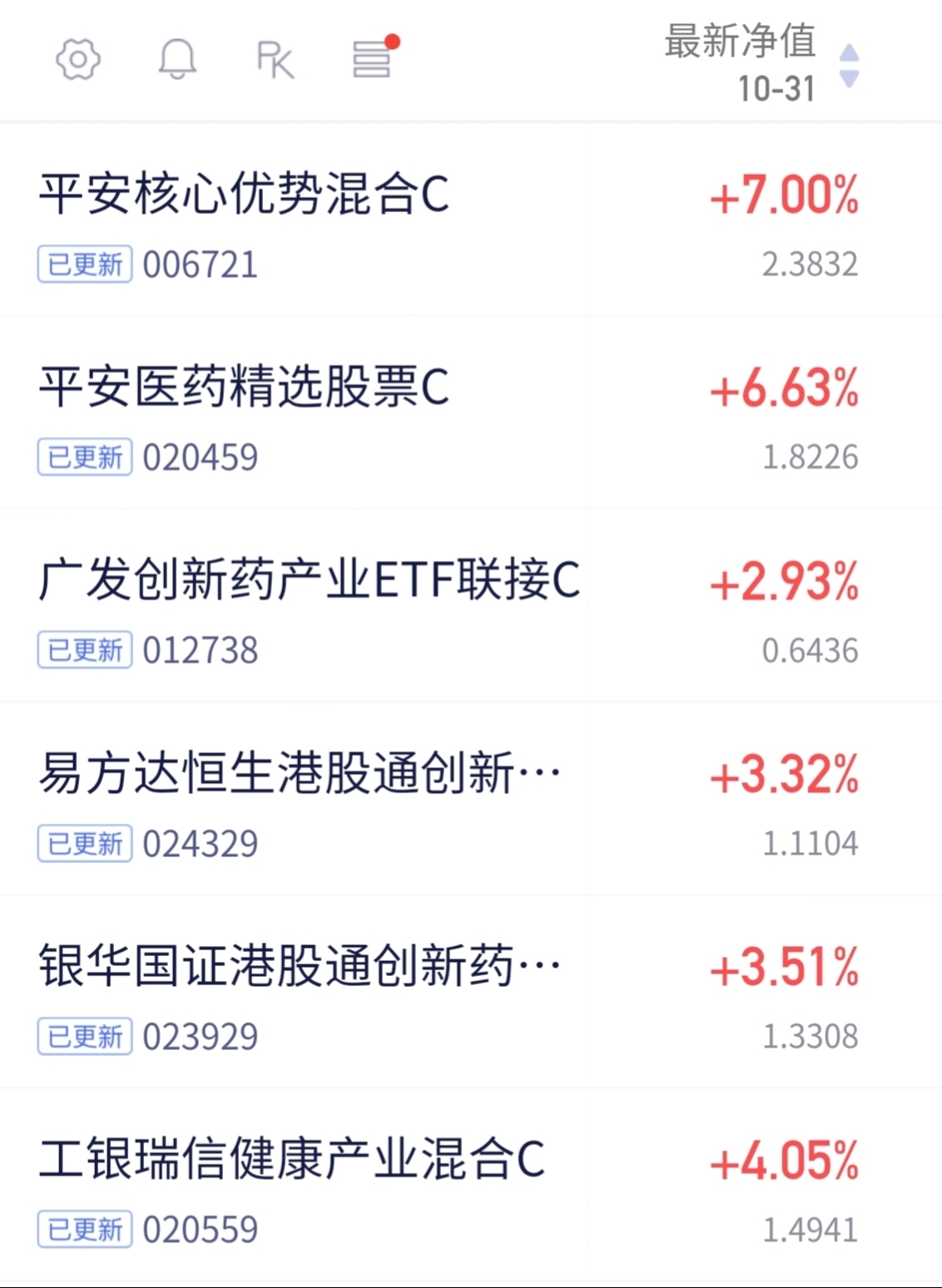 创新药今天干得真漂亮,现在是人见人爱的神仙药啦,药的趋势已经起来了,今天的涨幅只是个开胃菜,继续期待它们接下来的表现,今晚的净值收益也很棒,一起来看看~