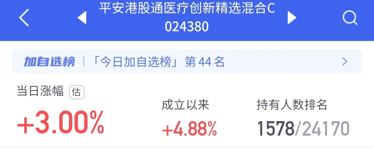 $平安港股通医疗创新精选混合C$ 估值大涨+3%,今天高开高走,经过前面调整,目前位置不高,打算右侧加一笔!