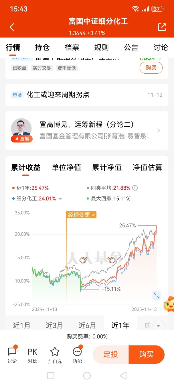 之前配了广发创新药,这阵子也加了点$富国中证细分化工产业主题ETF发起式联接C$