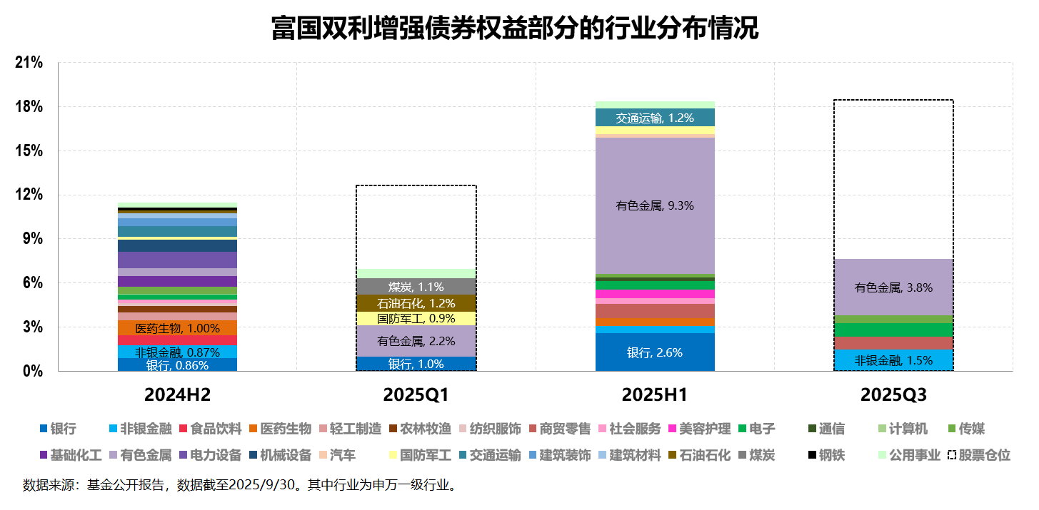 远的就不说了,仅以2025年为例,组合自2025年二季度以来(并延续到2025年三季度末)对有色金属的持续高配就属于“神来之笔”:众所周知,今年以来特别是今年下半年以来有色金属的表现可谓“惊艳”。