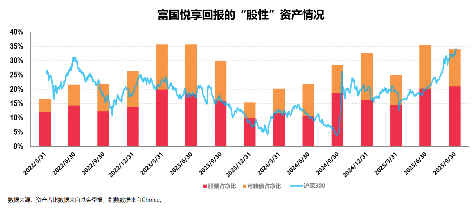 富国悦享回报是一只混合偏债基金,基金合同明确规定产品中股票资产占基金资产的比例为0%-30%(其中投资于港股通标的股票的比例不超过股票资产的50%);对一般债券的投资没有明确规定,但投资可转债(可交债)的比例规定了不超过基金资产的20%。