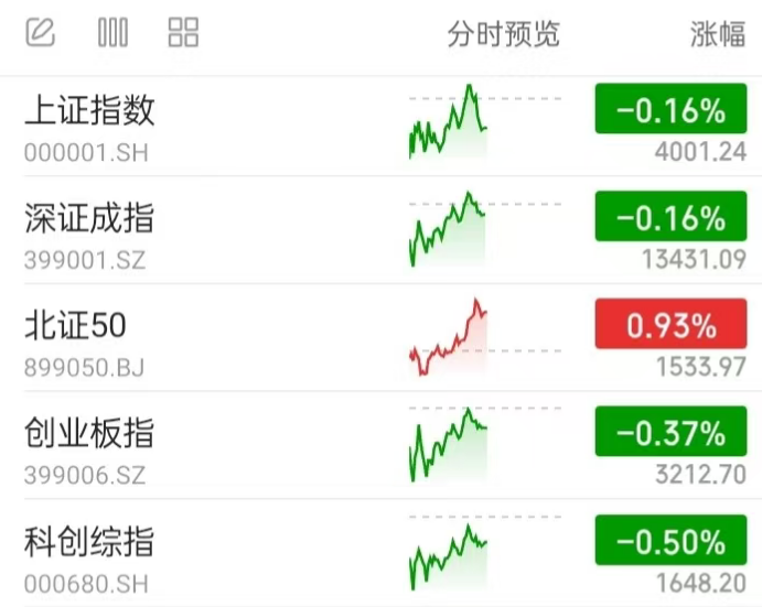 A股行情:截至中午,全市场各主流宽基指数多数小幅调整。