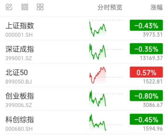 A股行情:截至中午,全市场各主流宽基指数多数调整,其中沪指回落至4000点下方。