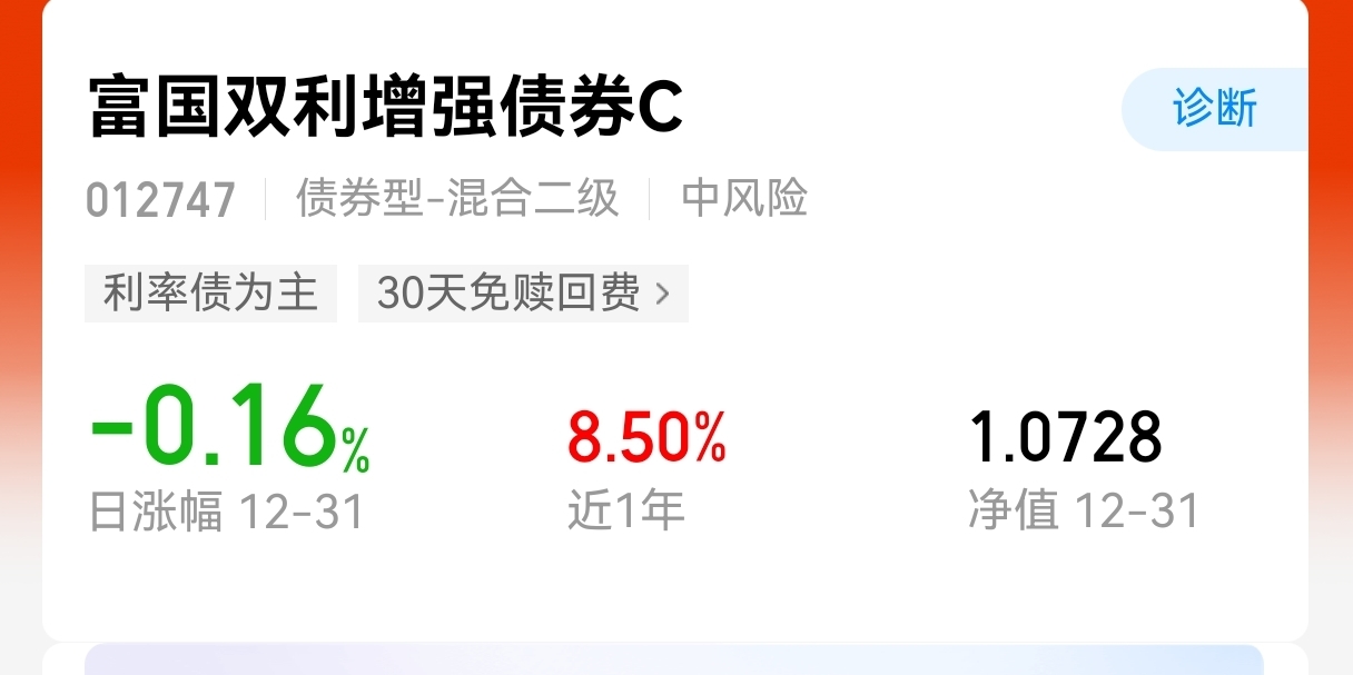 年终奖要发下来了,激动的心,到时候准备多配置固收+,像$富国双利增强债券C$就挺