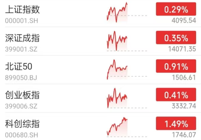 A股行情:截至午盘,全市场主流宽基指数全线上涨。
