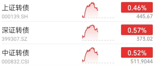 可转债行情:截至午盘,可转债三大指数全部上涨。