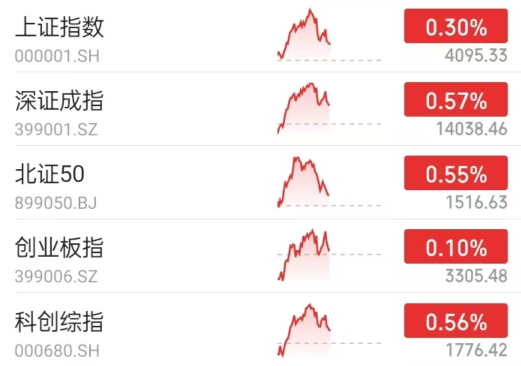 A股行情:截至午盘,全市场主流宽基指数全部上涨。
