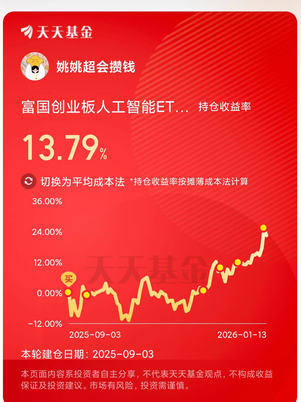 (三)今天AI应用延续强势,咱就是姚姚前期购买的$富国创业板人工智能ETF发起式联接C(OTCFUND|024663)$,真的强!今儿估值涨超3%,今天之后个人收益超17%,也不枉费姚姚一直以来的埋伏!