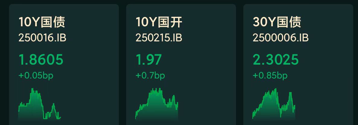 十年期国债收益率:1.8605%,+0.05BP(国债收益率越跌,债市越涨)