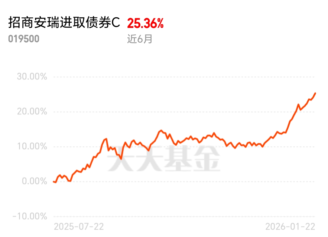 手里的闲钱不知道放哪,就选招商安瑞进取债券C,近6月25.36%收益,比货币基金