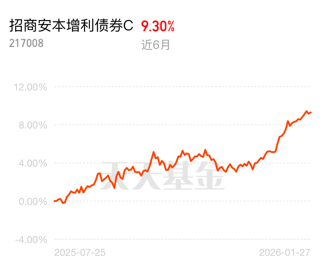 当下布局债基的优质选择就是招商安本增利债券C,近6个月收益9.30%,基金经理深