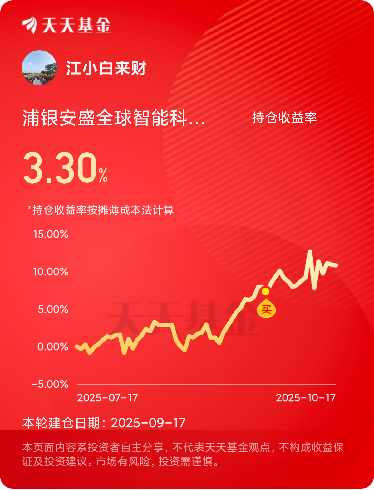 目前定投美股市场可能是大多数普通人实现财富快速增长的途径,而我选择浦银安盛全球智能科技,看的准弹性高还完全不限额$浦银安盛全球智能科技(QDII)C$ #晒收益#