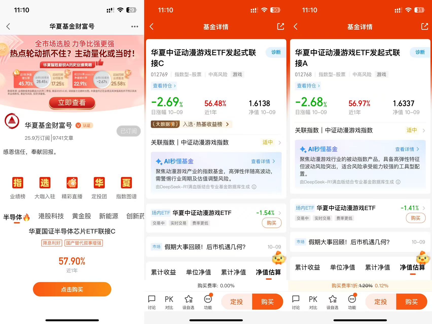 $华夏中证动漫游戏ETF发起式联接C(OTCFUND|012769)$