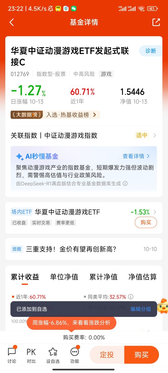 #分享国庆见闻,晒收益,瓜分好礼!# #全球市场深夜暴跌!纳指重挫超3%# $华夏中证动漫游戏ETF发起式联接C$