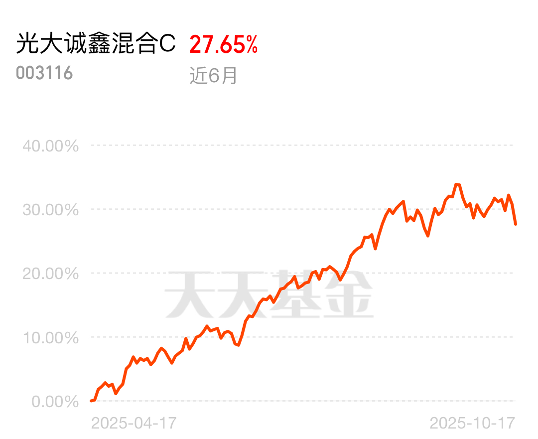 最近市场情绪稳多了,之前涨得好的基金现在位置也合理,光大诚鑫混合C近六月27.6