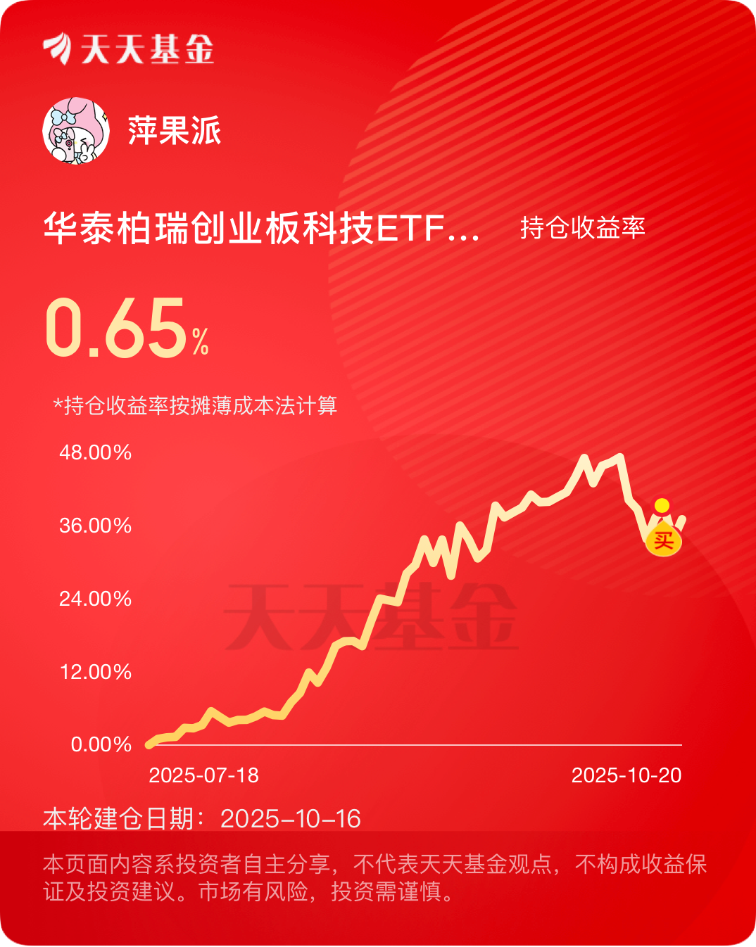 今天科技板块真强势,$华泰柏瑞创业板科技ETF发起式联接C$涨超3%。近3个月3