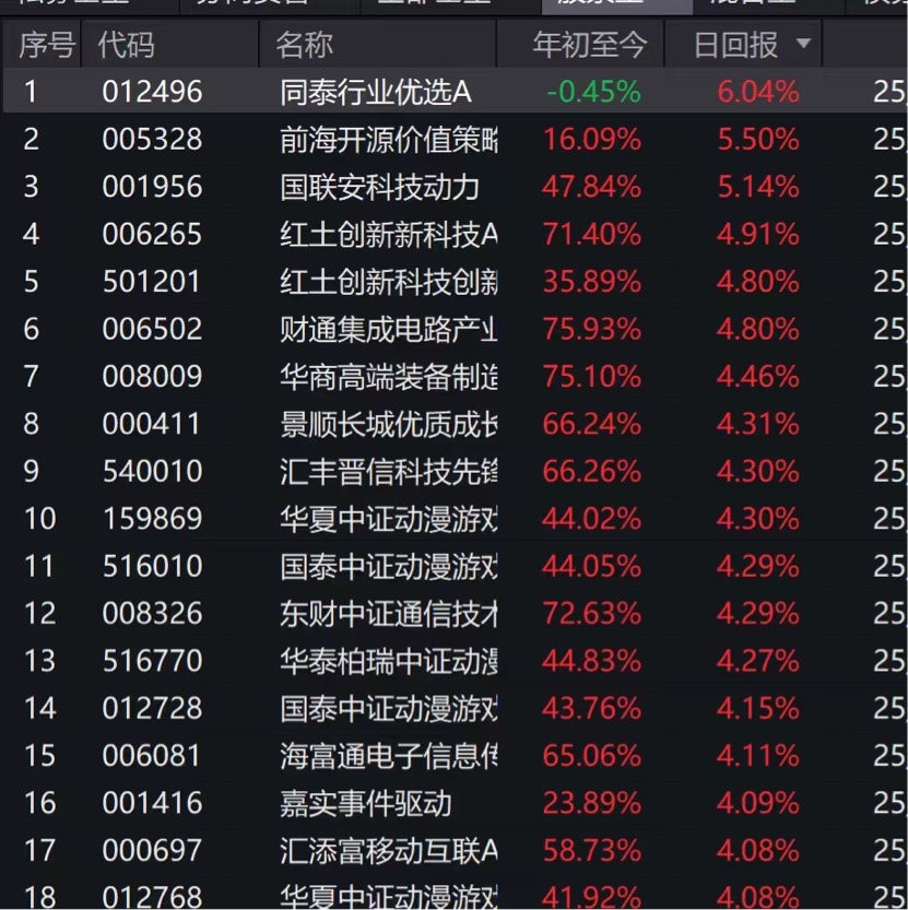 CPO真是太强了,昨天涨8.2%、今天涨4.5%,我在十月就清仓了,后面没再参与,只能说声羡慕。充分体现了强者恒强:$同泰数字经济股票C$ $同泰行业优选股票C$