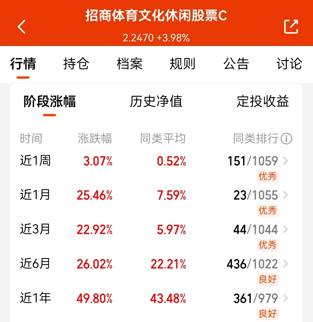 我还是看好这支$招商体育文化休闲股票C$ ,跟踪动漫板块,近1年收益也有49.80%了,伴随春节到来,游戏等业余时间增多,叠加政策支持,板块迎来业绩增长预期,而且作为CPO等科技方向的对冲,我还是看补涨啦!