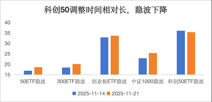 近期市场震荡,波动加大,短期情绪偏弱,年底前,在重要宏观经济政策、重要外部贸易环境、年度财务报告等政策、事件和数据相对平淡时期,市场缺乏进一步上攻的催化剂,叠加年底因素,资金行为上可能更为保守防御,从而带动市场的震荡走弱,从股指期货贴水、ETF期权隐含波动率来看,同时上周五的融资资金余额下降近300亿,显示市场预期相对偏弱。(数据来源:Wind)