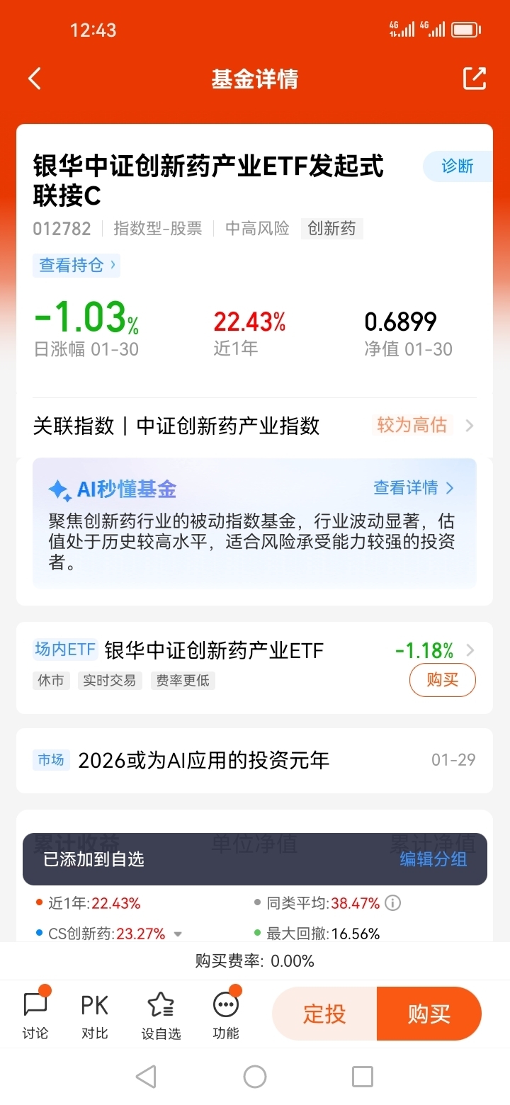 综上所述,我提前布局了银华中证创新药产业ETF发起式联接C(012782),因为王帅基金经理对于创新药赛道有着相当深入的研究,他的投资经验也是相当的丰富,所以我有理由期待该基金在未来可以带给我更大的惊喜。@银华基金