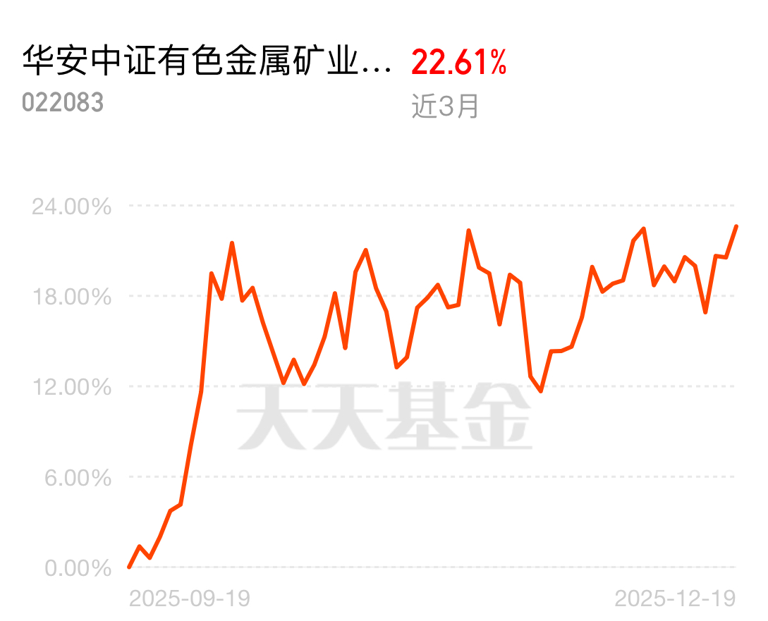 有色矿业这势头太猛了!华安中证有色金属矿业主题指数A上周五又大涨1.71%,成分股100%都是有色金属板块的,目前入选平台超省指数,申购费0折,接着涨我可太期待了~