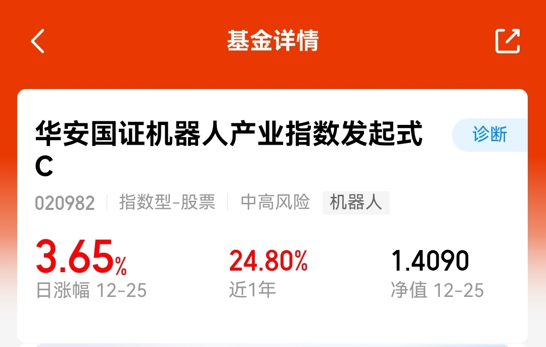选机器人赛道就盯它!$华安国证机器人产业指数发起式C$ 日涨 3.65%,近一年收益 24.80%,净值 1.4090,成长反弹双在线超靠谱