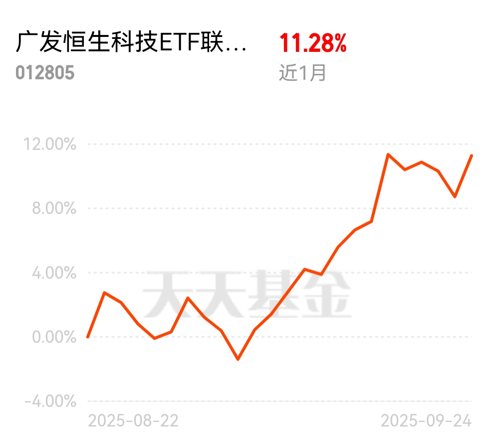 恒生科技果然没买错你!早上一看又高开了,现在进场$广发恒生科技ETF联接(QDI
