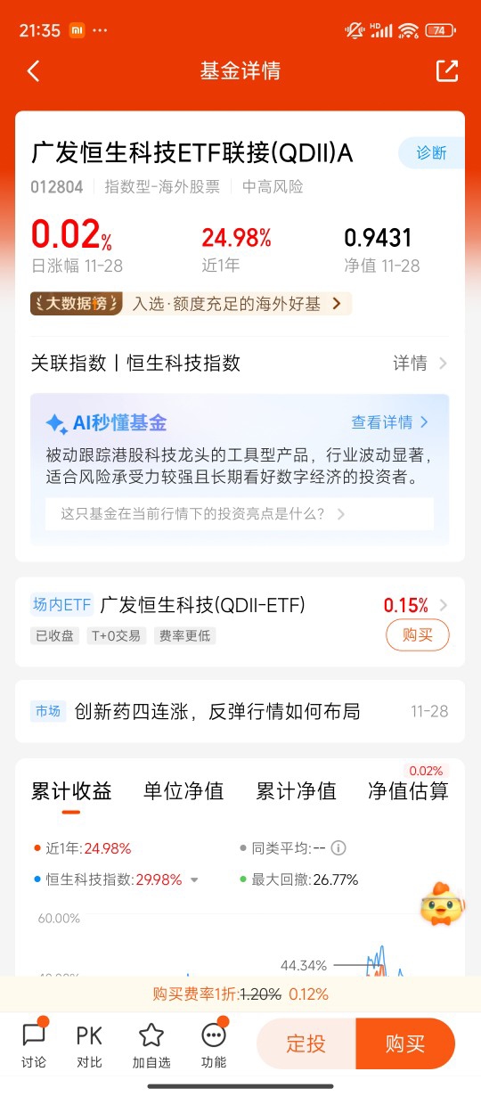 恒生科技又开始反弹了,今天小赚0.02%,慢慢涨心里反而更踏实