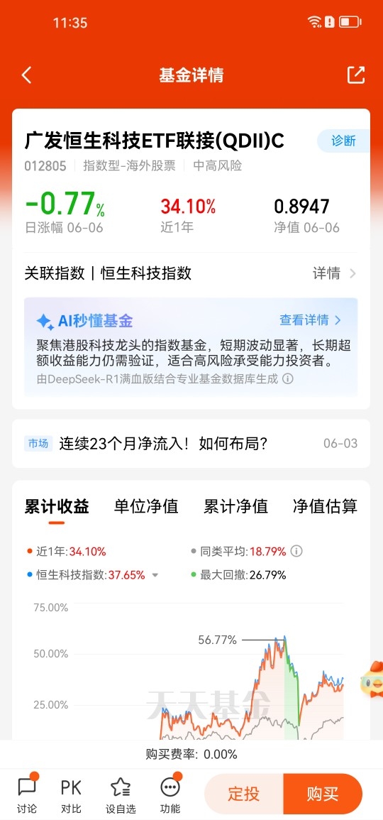 对于普通投资者而言,直接投资港股市场面临着诸多困难,如信息获取不便、交易成本高、投资风险大等。而投资$广发恒生科技ETF联接(QDII)C$ 则为普通投资者提供了一种低成本、高效率的投资工具。通过投资相关ETF,投资者可以一键“打包”阿里、腾讯、中芯国际等优质科技龙头,实现对港股科技板块的整体布局。这种指数化投资方式不仅操作简便,还能有效分散投资风险,提高投资效率。